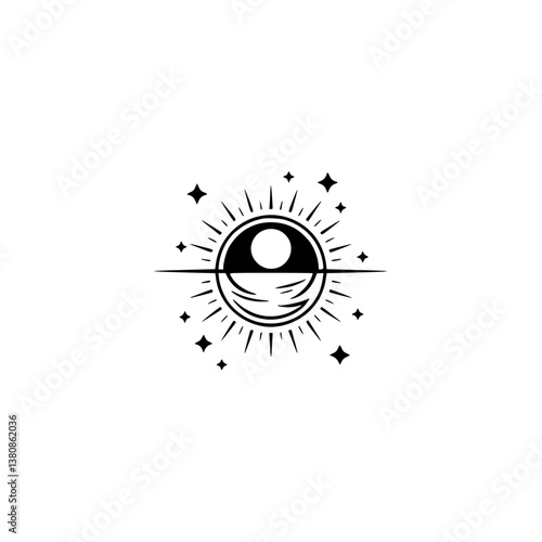 Fototapeta premium Mystical Celestial Eye Logo Design, Minimalist Geometric Vector
