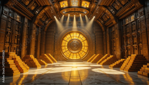 Obraz premium Mystical chamber of light futuristic setting digital art warm atmosphere low angle enigmatic design