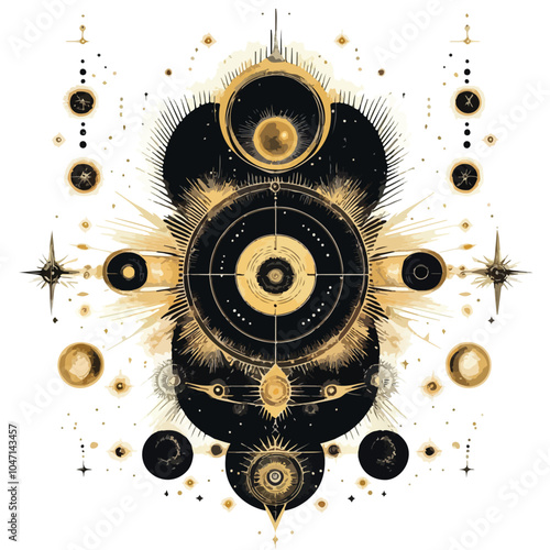Obraz premium Mystical Cosmic Elements in Gold Composition Vector