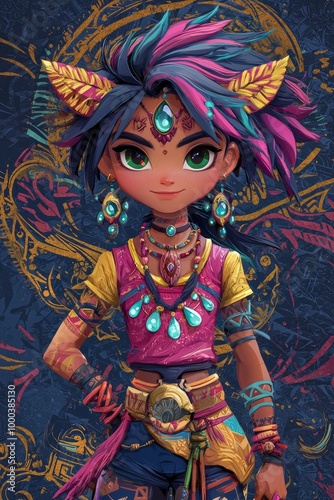 © Tung's companion, Fototapeta premium Mystical Creature in a Neon Forest
