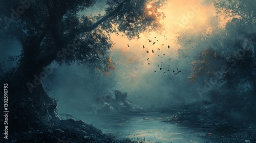 © Mulyadi Lim, Fototapeta premium Mystical Dawn: A Serene Forest River