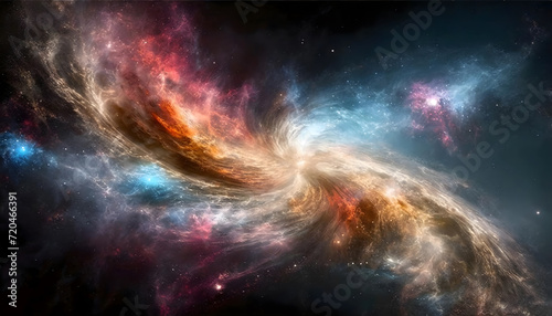 © PhotoStorm_22, Obraz premium Mystical Emission Nebula: Space Nebulae with Copyspace on Black Background