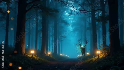Obraz premium Mystical Enchanted Forest With Glowing Lights
