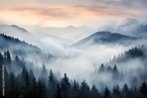 Obraz premium Mystical Fog Over Serene Mountains