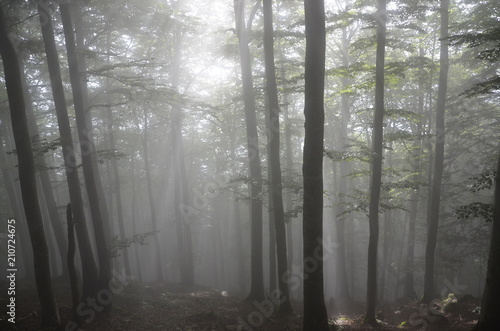 © Luca, Naklejka premium Mystical Foggy Forest