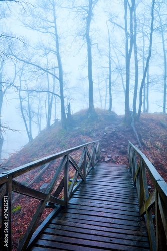 © nyul, Obraz premium Mystical foggy forest in late Autumn
