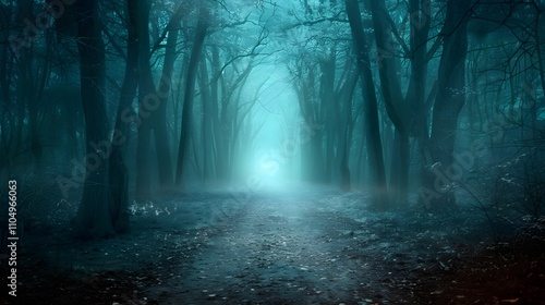 Fototapeta premium Mystical Foggy Forest Path Beckons Through Ancient Trees