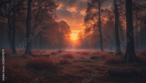 Fototapeta premium mystical forest at dusk during autumn, enchanting scenery