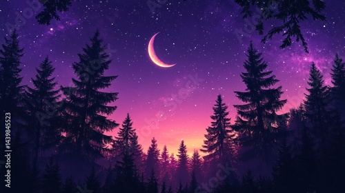 © Erisna Yolanda, Naklejka premium Mystical forest at night under a crescent moon
