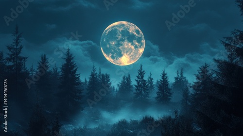 © khanifah, Naklejka premium Mystical forest at night under a full moon
