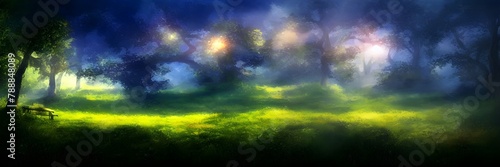 Naklejka premium Mystical forest in ethereal lights and shadows