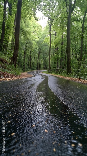 Fototapeta premium Mystical Forest Journey Road Greenery Wet Morning Tranquility Photo