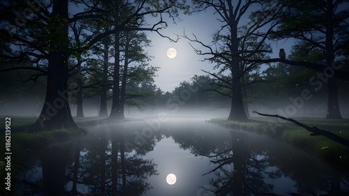 Fototapeta premium Mystical forest moonlit reflection