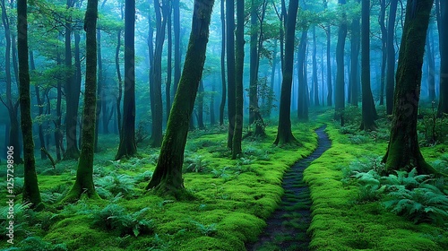 © Vu, Fototapeta premium Mystical Forest Path: A Lush Green Landscape Photography AI Generated