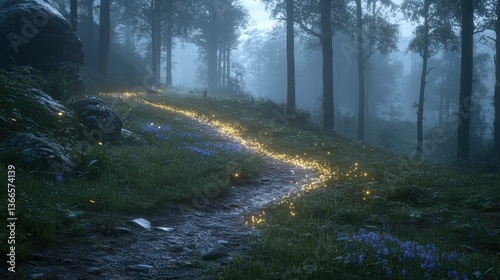 © SAQUEEN, Fototapeta premium Mystical forest path at twilight