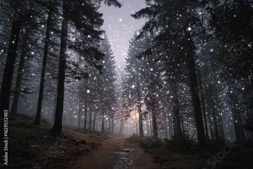 Fototapeta premium Mystical forest path, blanketed in glowing snow