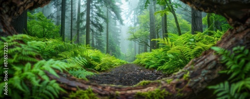 © pisan, Fototapeta premium Mystical Forest Path Framed by Lush Greenery, A Serene Escape into Nature's Embrace, Discover Tranquility Amidst the Trees, A Vision of Tranquility, Framed Portraits of Nature's Beauty, Explore the