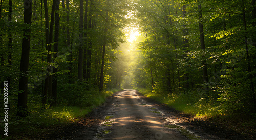 Fototapeta premium Mystical Forest Road & Golden Light Scene
