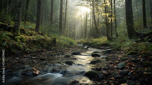 Obraz premium Mystical Forest Stream at Sunrise