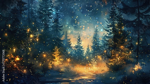 Fototapeta premium Mystical forest wallpaper. Night forest wallpaper. magical forest with fog...
