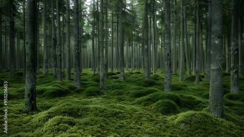 © wahyu, Obraz premium Mystical Forest with Lush Moss