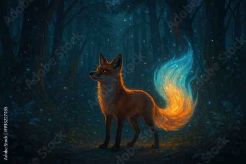 © Rawpixel.com, Fototapeta premium Mystical fox with glowing tail background