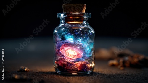 Fototapeta premium Mystical Galaxy in a Glass Jar: Fantasy Concept for Science, Dreams, and Imagination