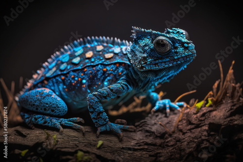 Obraz premium Mystical glowing lizard or iguana in a magical nature. Isolated on blurred...