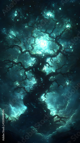 © Sri, Obraz premium Mystical Glowing Tree At Night