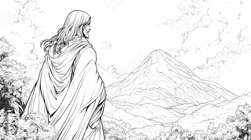 © Nikita44, Obraz premium Mystical Jesus Statue Illustration Capturing Serenity and Spiritual Divine Light
