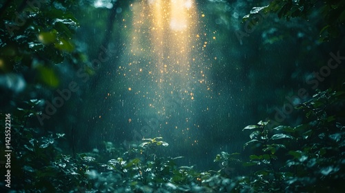 © istriyati, Obraz premium Mystical light beams through forest canopy