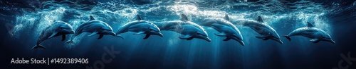 © Alokya, Fototapeta premium Mystical marine mammals in deep water.