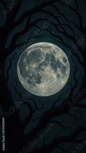 Fototapeta premium Mystical moonlight through twisted branches mobile wallpaper