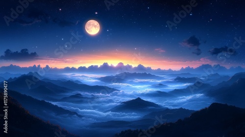 © Sandu, Fototapeta premium Mystical Moonlit Mountain Landscape