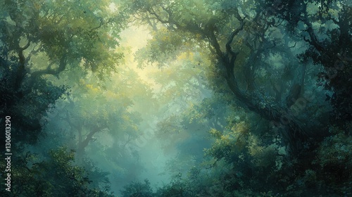 Naklejka premium Mystical Morning in Dense Foggy Woods