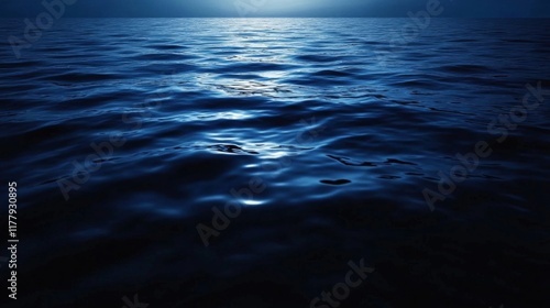 Naklejka premium Mystical Night Ocean: Deep Blue Water Under Moonlight