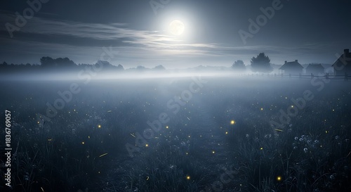 © Wandi, Naklejka premium Mystical Nightscape - A Serene Landscape Under the Moonlight.