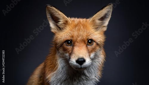 © netsay, Fototapeta premium Mystical Nocturnal Encounter A Vivid Portrait of a Fox Amidst the Shadows on a Stark Black Canvas, Radiating Elegance and Mystery.