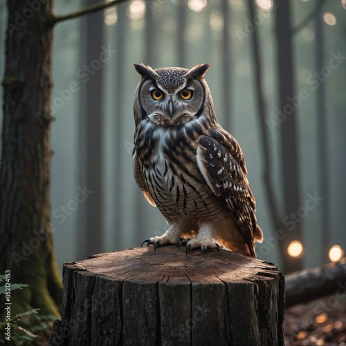 © GMeta, Fototapeta premium Mystical Owl in Twilight Forest
