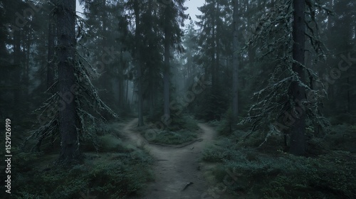 Obraz premium Mystical path forks within a dark forest