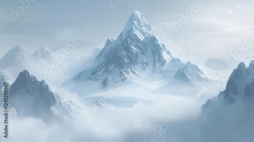 Obraz premium Mystical peaks pierce through ethereal clouds, snowy mountain fantasy