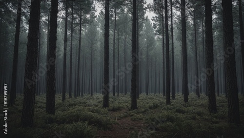 Fototapeta premium Mystical Pine Forest in Dramatic Twilight