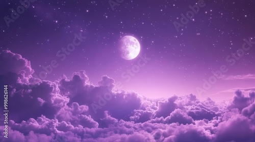Fototapeta premium mystical purple night sky dreamy moonlit clouds twinkling stars ethereal...