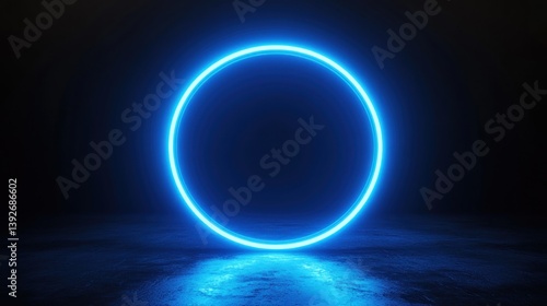 Obraz premium Mystical radiant blue circle glowing in a dark, futuristic interior space