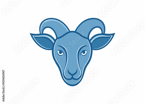Naklejka premium Mystical Ram: A serene illustration of a ram's face, with graceful curved horns. It evokes a sense of peace and tranquility.