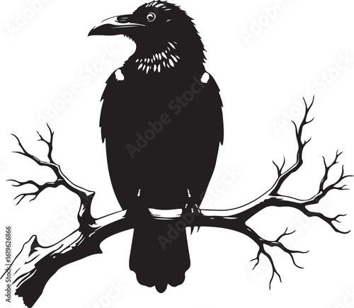 Obraz premium Mystical Raven on a Bare Branch