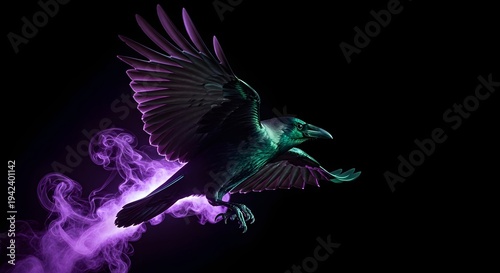 Naklejka premium Mystical raven with glowing purple aura on dark background