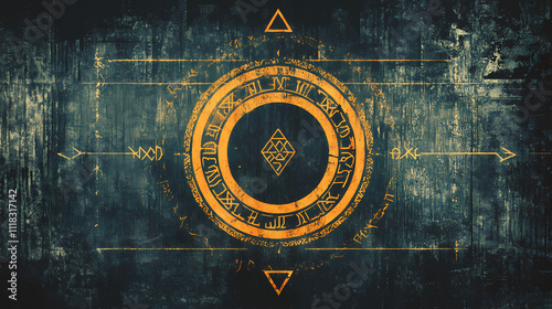 © Thiago, Fototapeta premium Mystical runes background, ai generated. Runes. Illustration