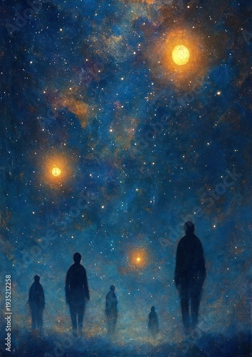 Fototapeta premium Mystical silhouettes under starry sky.