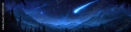 Naklejka premium Mystical stars glow softly under a serene moonlit sky, awaiting words